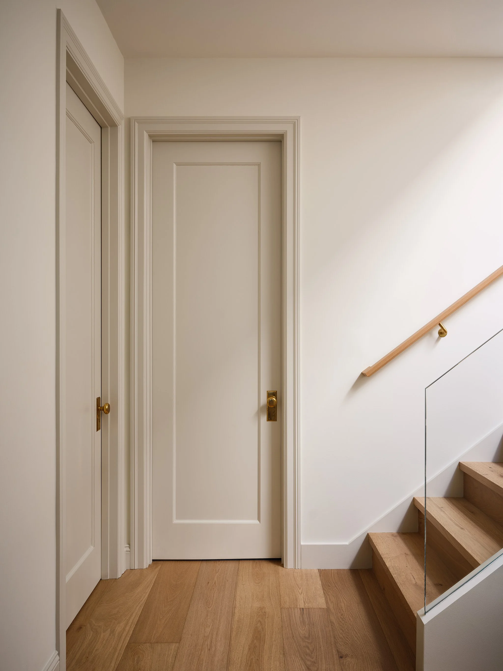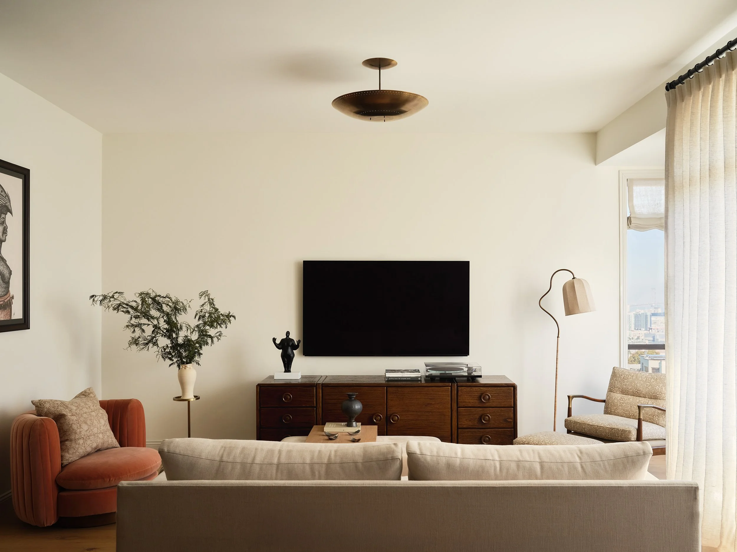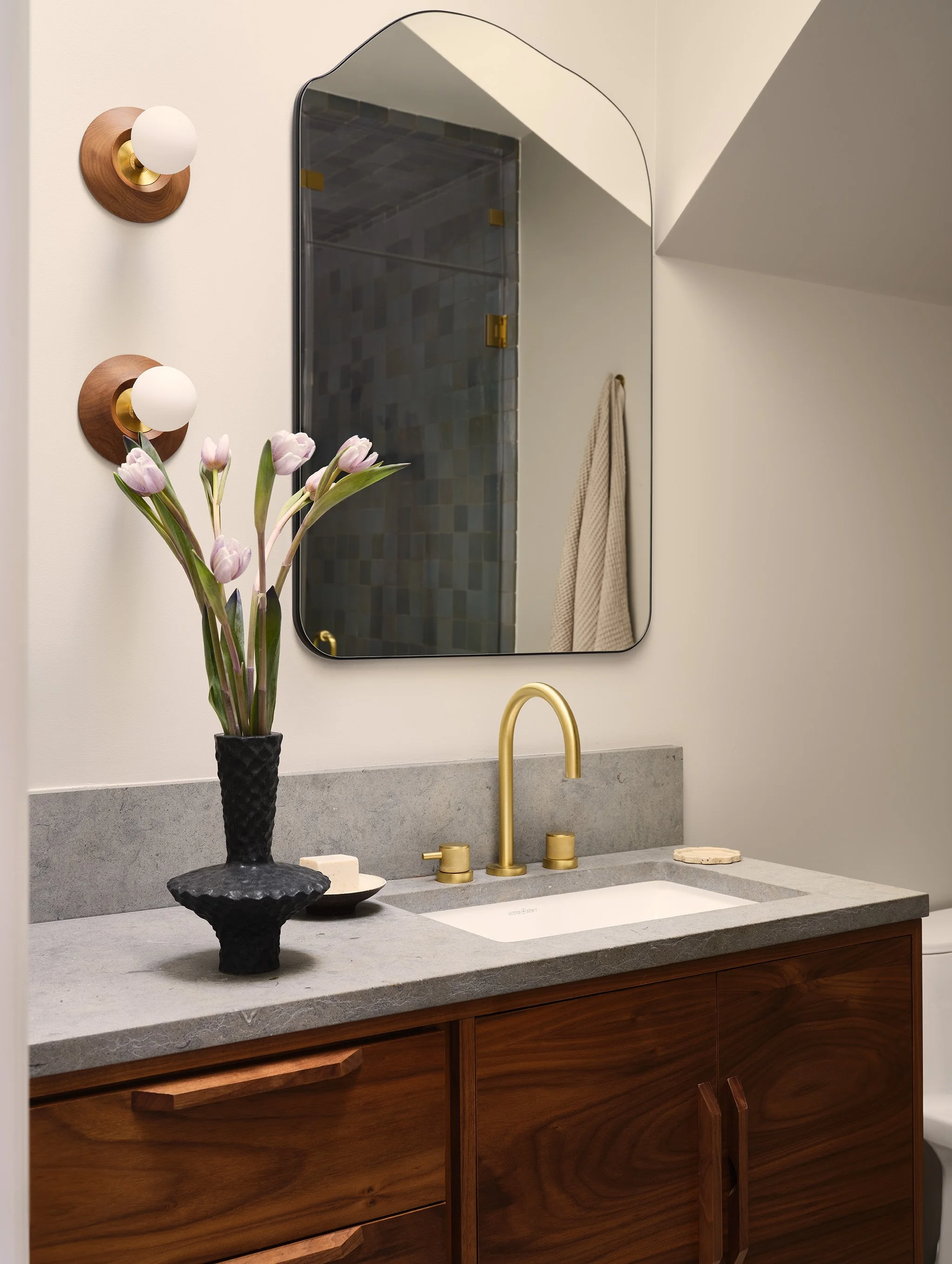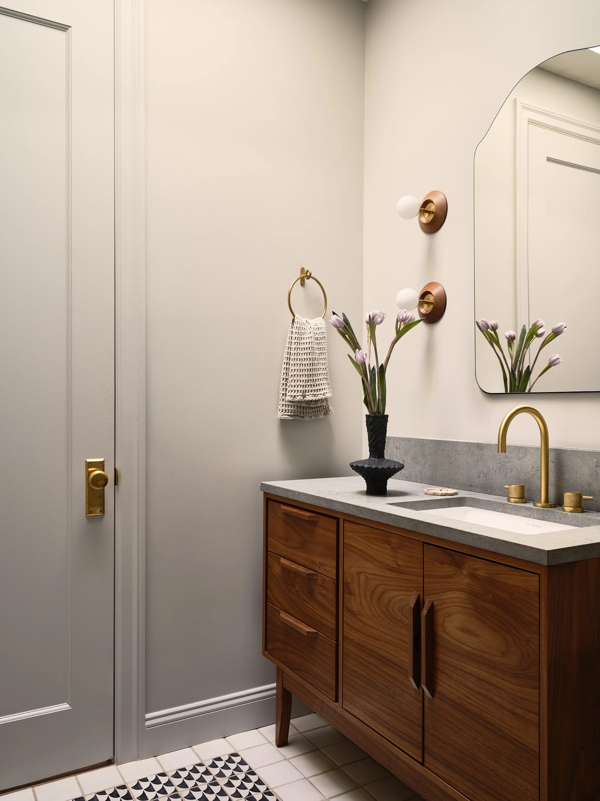 This project was a full gut renovation, including the kitchen, living and dining rooms, two bathrooms, and the stairway connecting three levels. The home, with sweeping views of the San Francisco Bay, now opens up to those vistas from the main living spaces and rooftop patio. Designed for an adventurous couple who love to travel and cook, the space blends modern, light-filled interiors with rich colors, textures, and personal pieces reflecting their Indian heritage and global travels.
