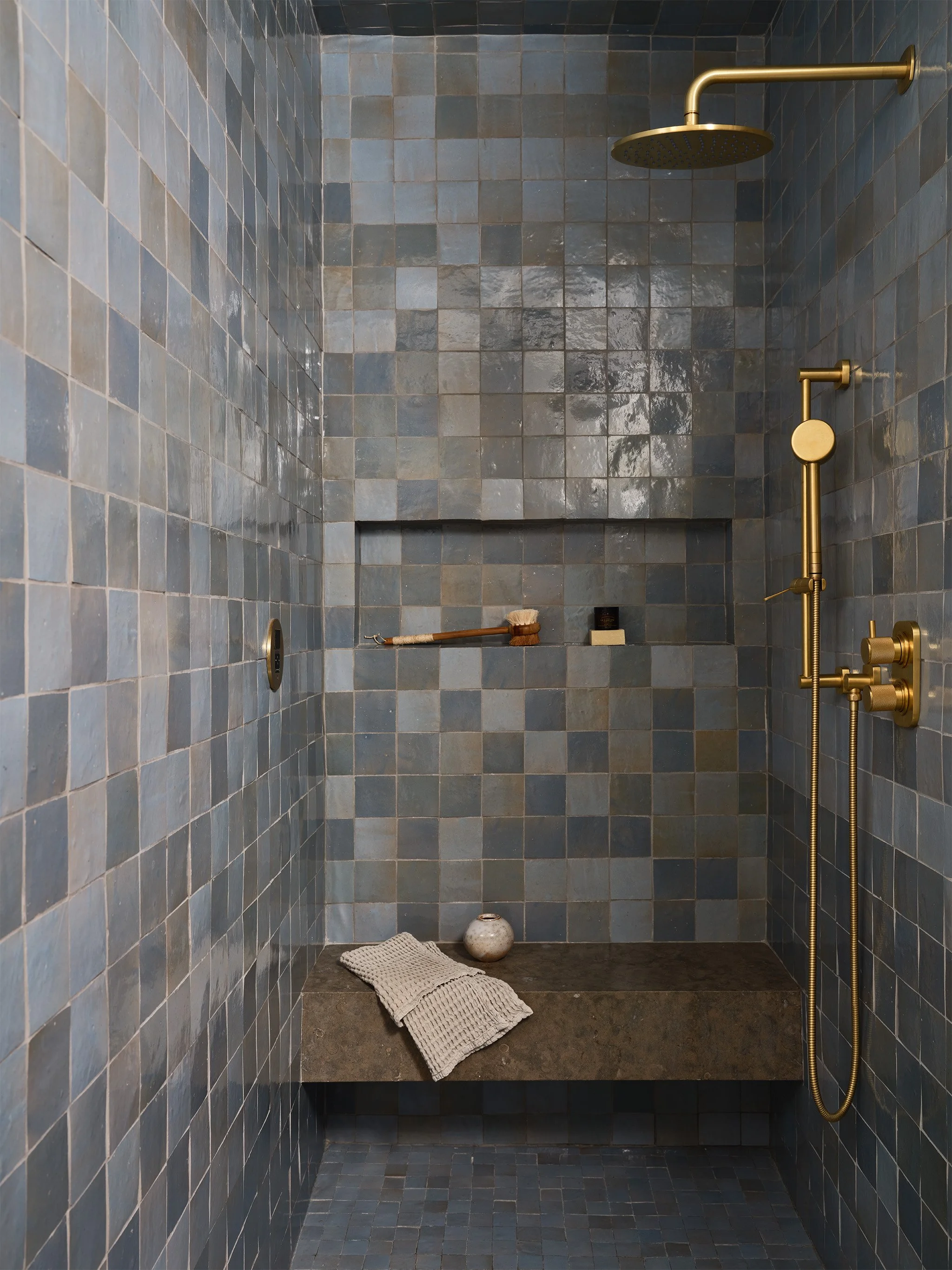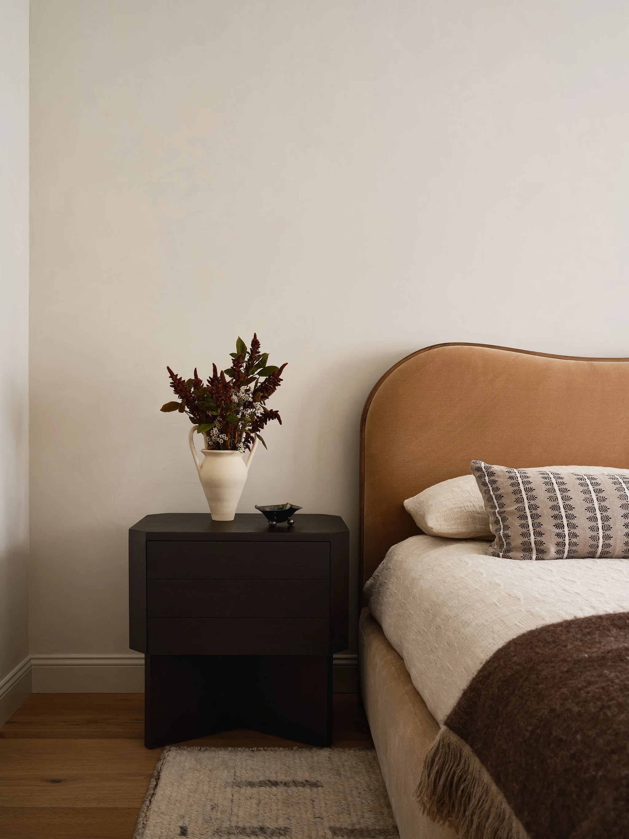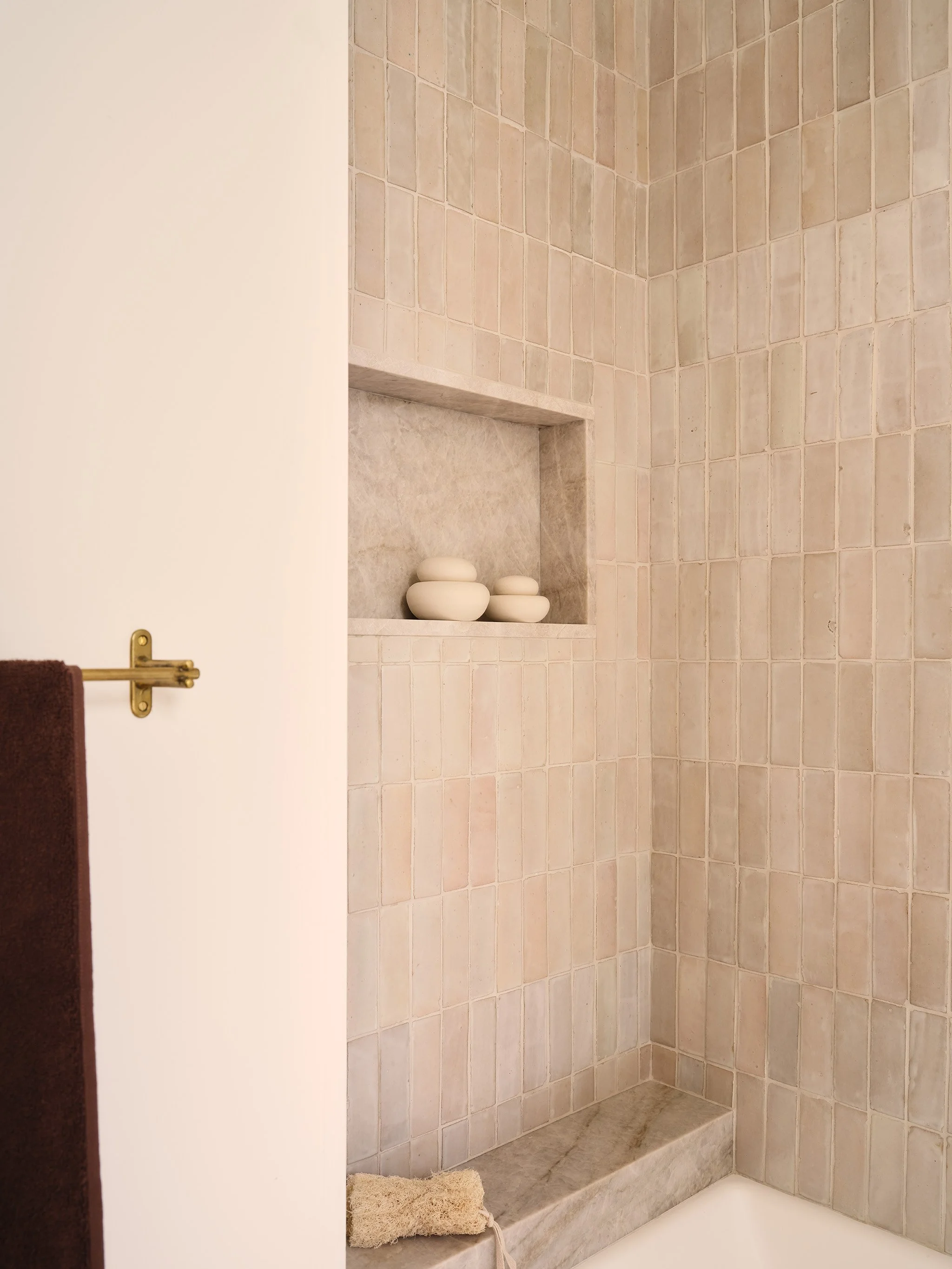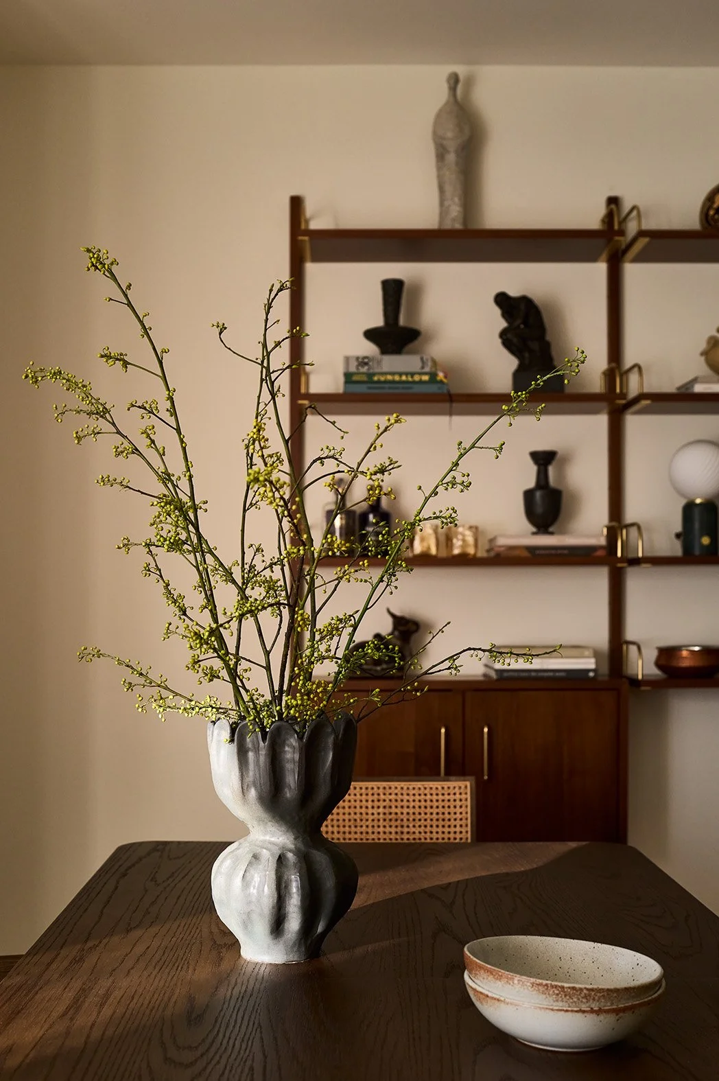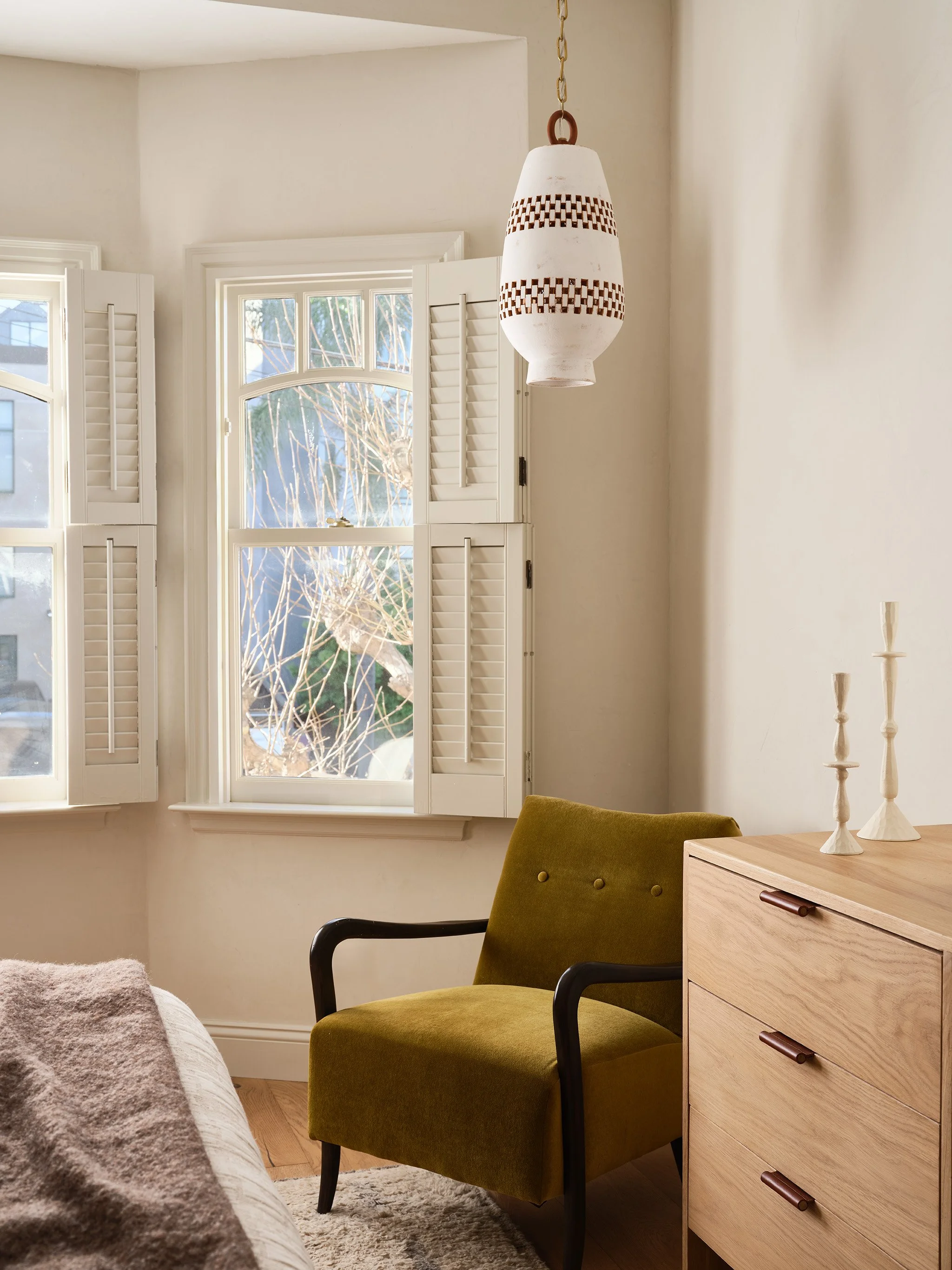 This project was a full gut renovation, including the kitchen, living and dining rooms, two bathrooms, and the stairway connecting three levels. The home, with sweeping views of the San Francisco Bay, now opens up to those vistas from the main living spaces and rooftop patio. Designed for an adventurous couple who love to travel and cook, the space blends modern, light-filled interiors with rich colors, textures, and personal pieces reflecting their Indian heritage and global travels.