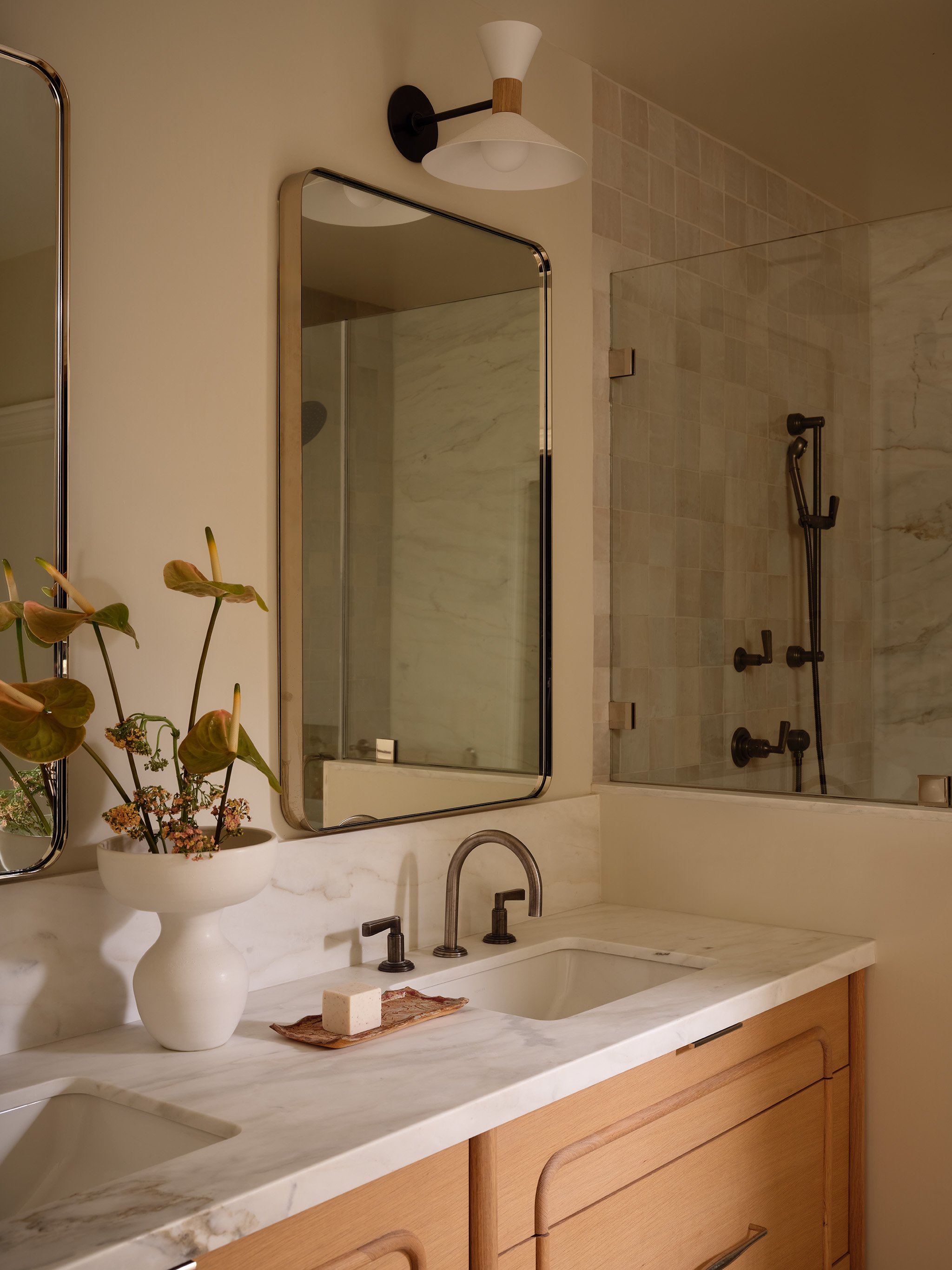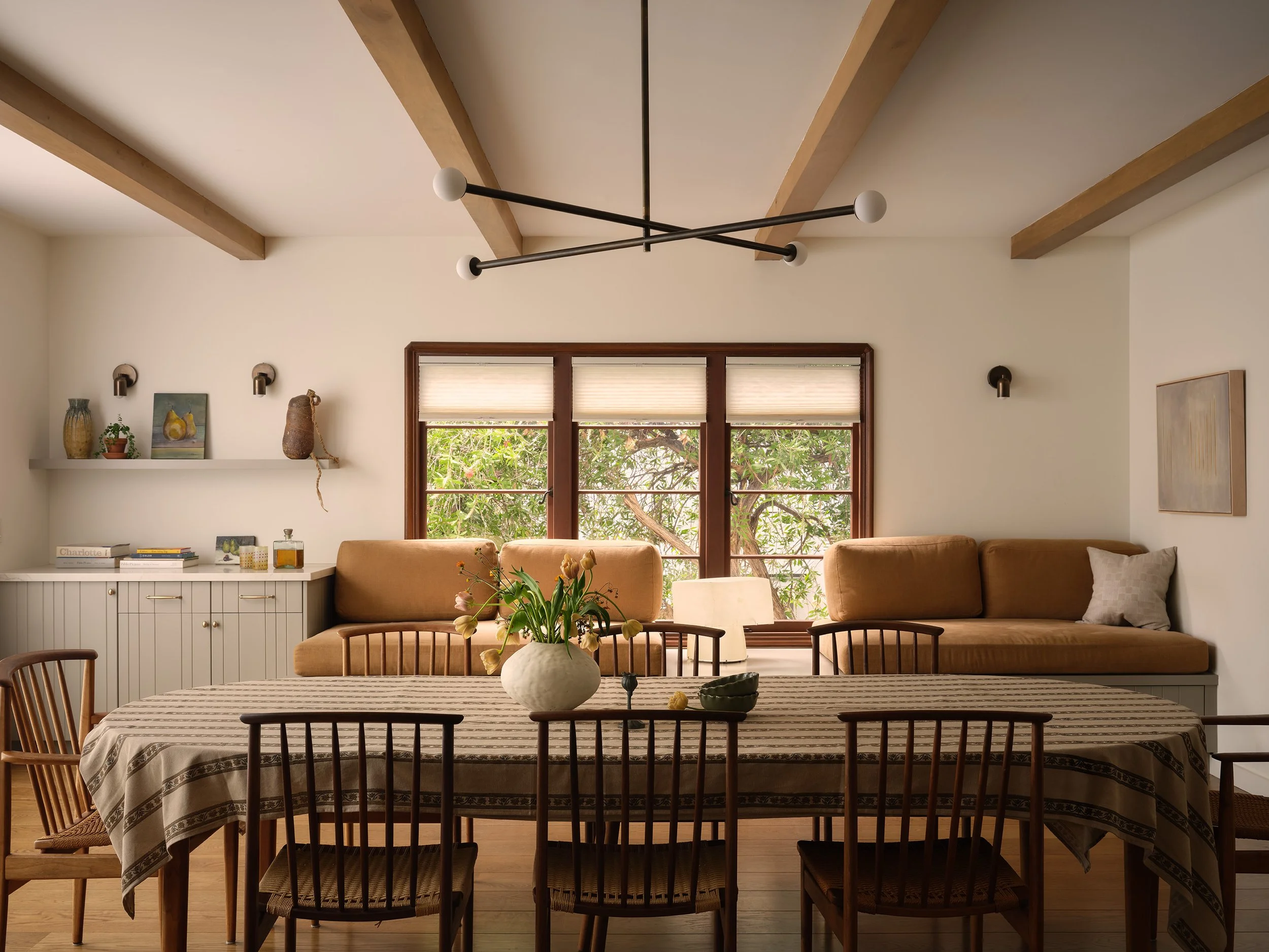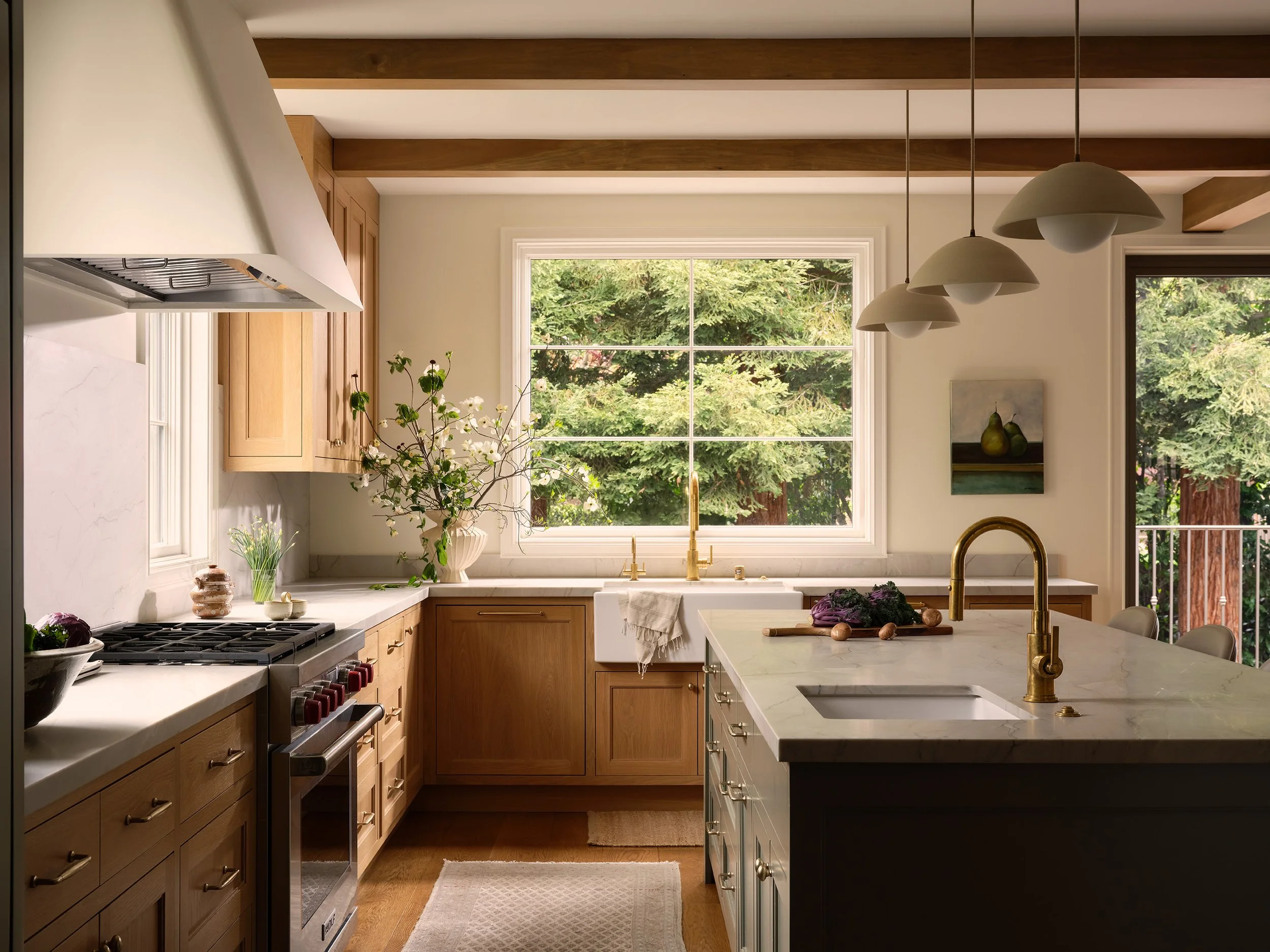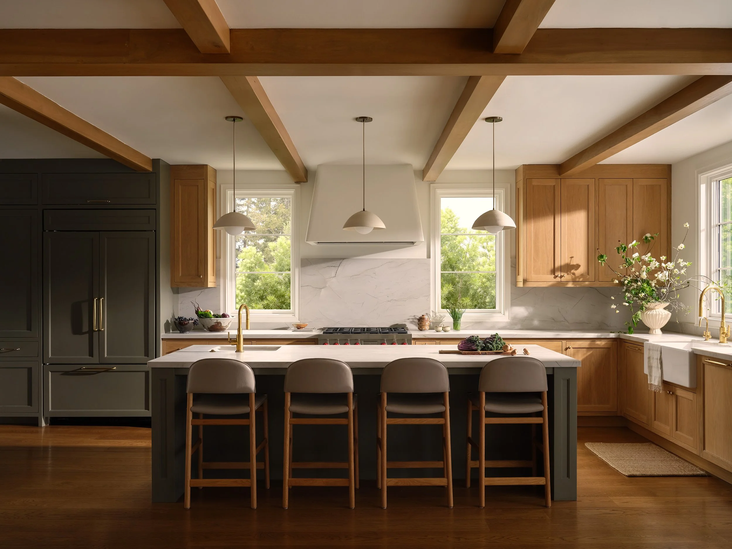 This charming Mediterranean-style home had an expansive footprint and backyard when our clients purchased it, but the compartmentalized layout was inefficient and lacking in storage, and didn’t fit the needs of a family of four. By demolishing the previous kitchen/dining room/sunroom, we were able to create a new Great Room where our clients could both cook and dine on a daily basis, and entertain guests on special occasions. What we love best of all is that with the addition and restoration of design elements such as the plaster fireplace and wooden ceiling beams, we combined the historic with modern in a seamless, elevated way. The result is a home that is every bit as inviting and warm as it is functional.